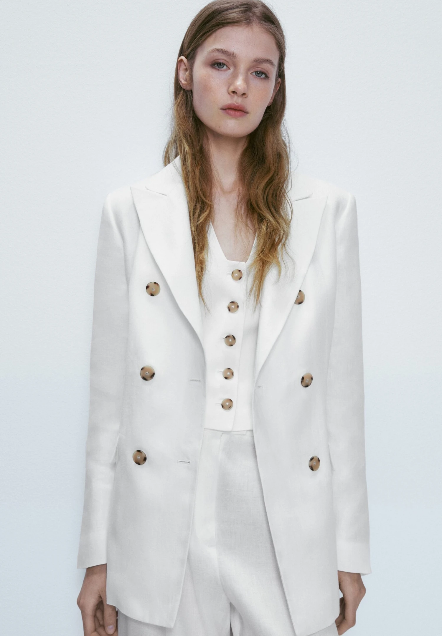 | Details | Decorative buttons, shoulder pads |