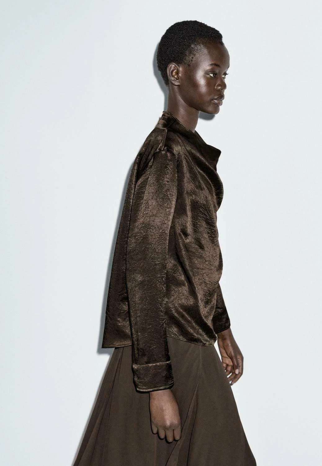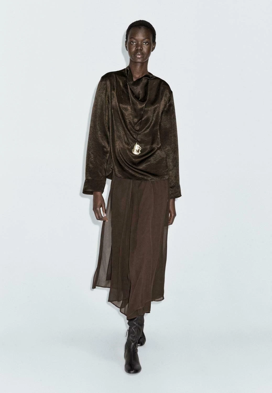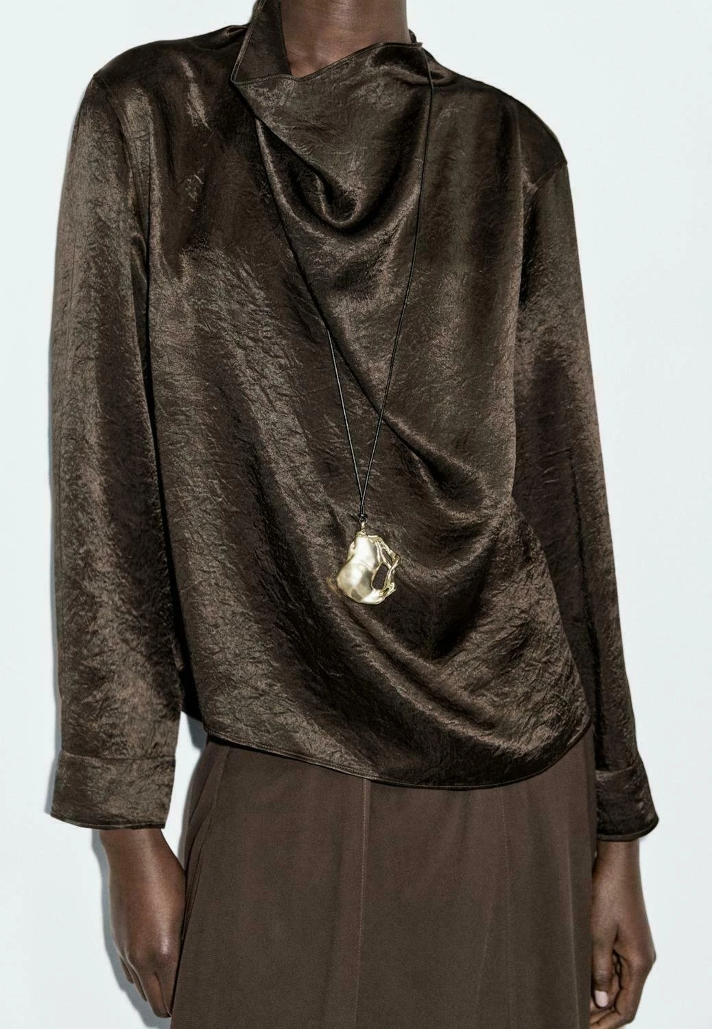 - Neckline: Cowl neck