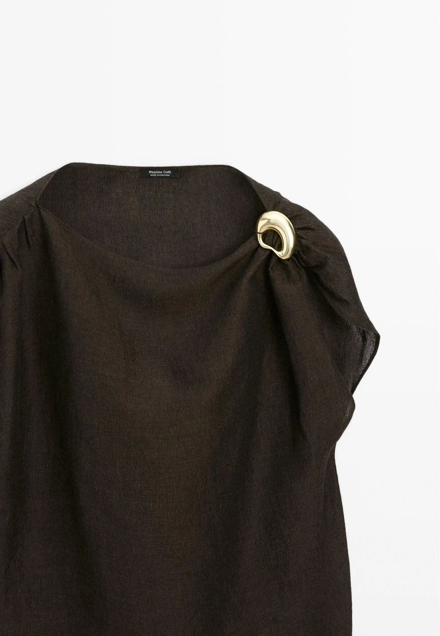 - Neckline: Boat neck