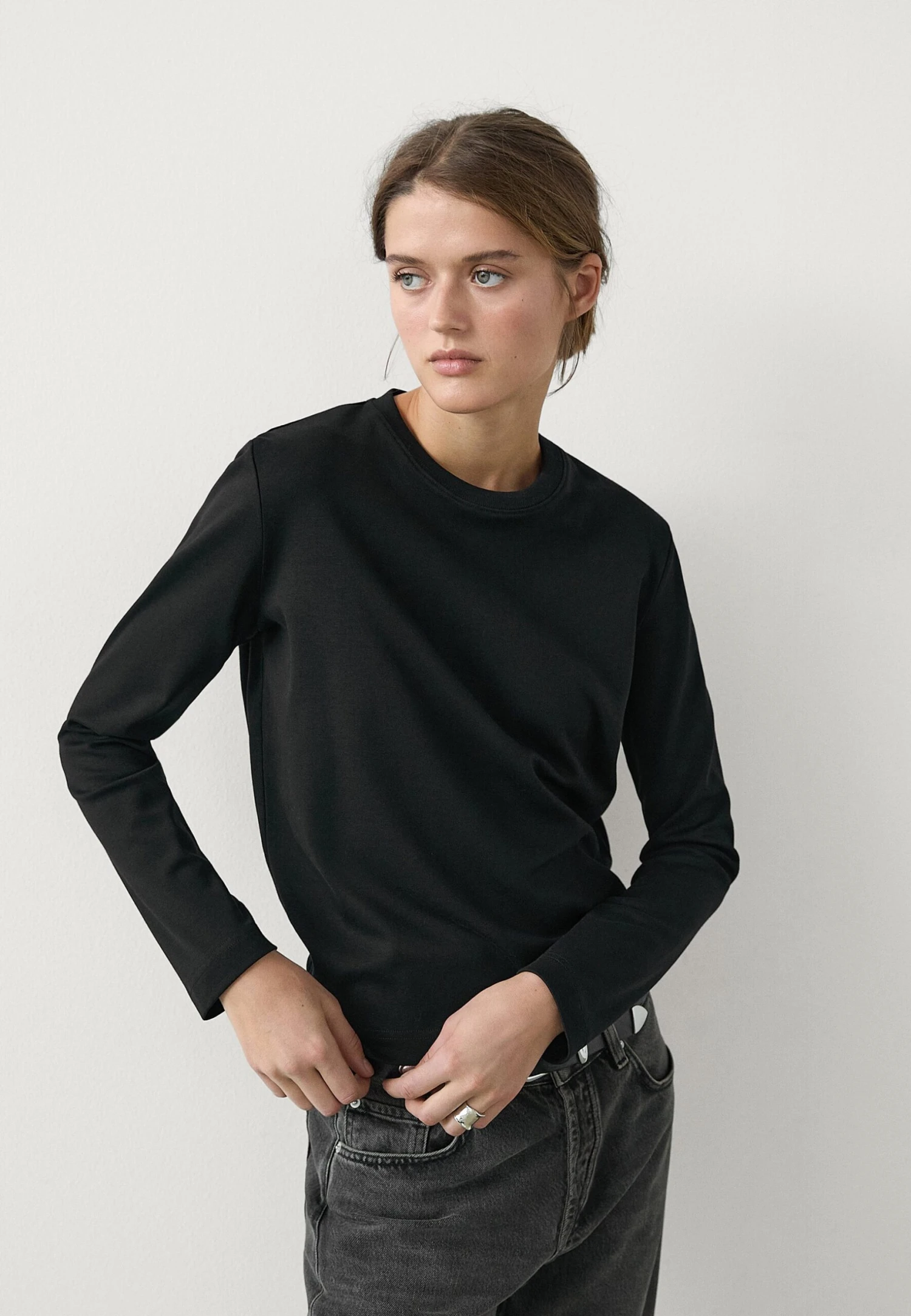 - Neckline: Crew neck