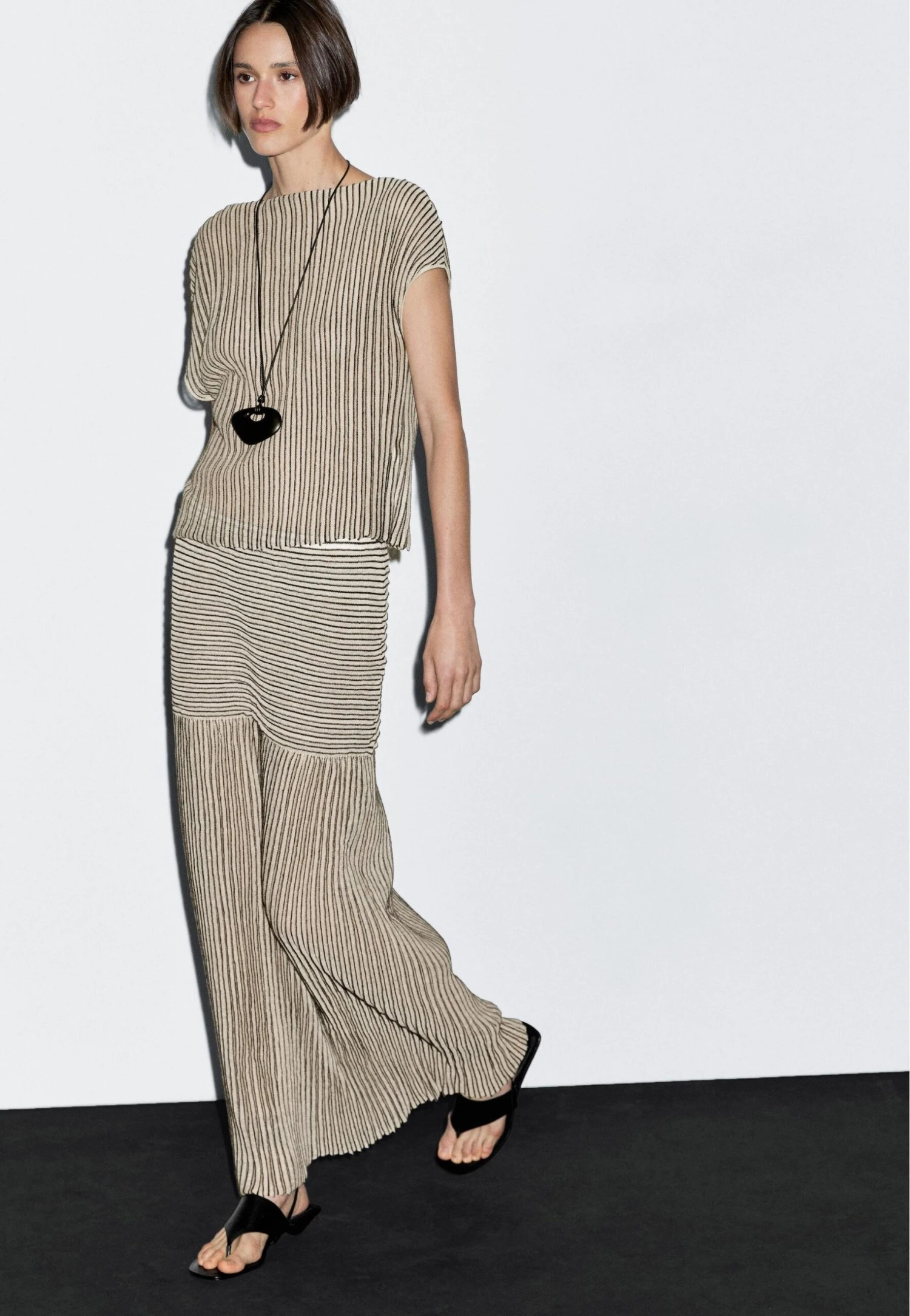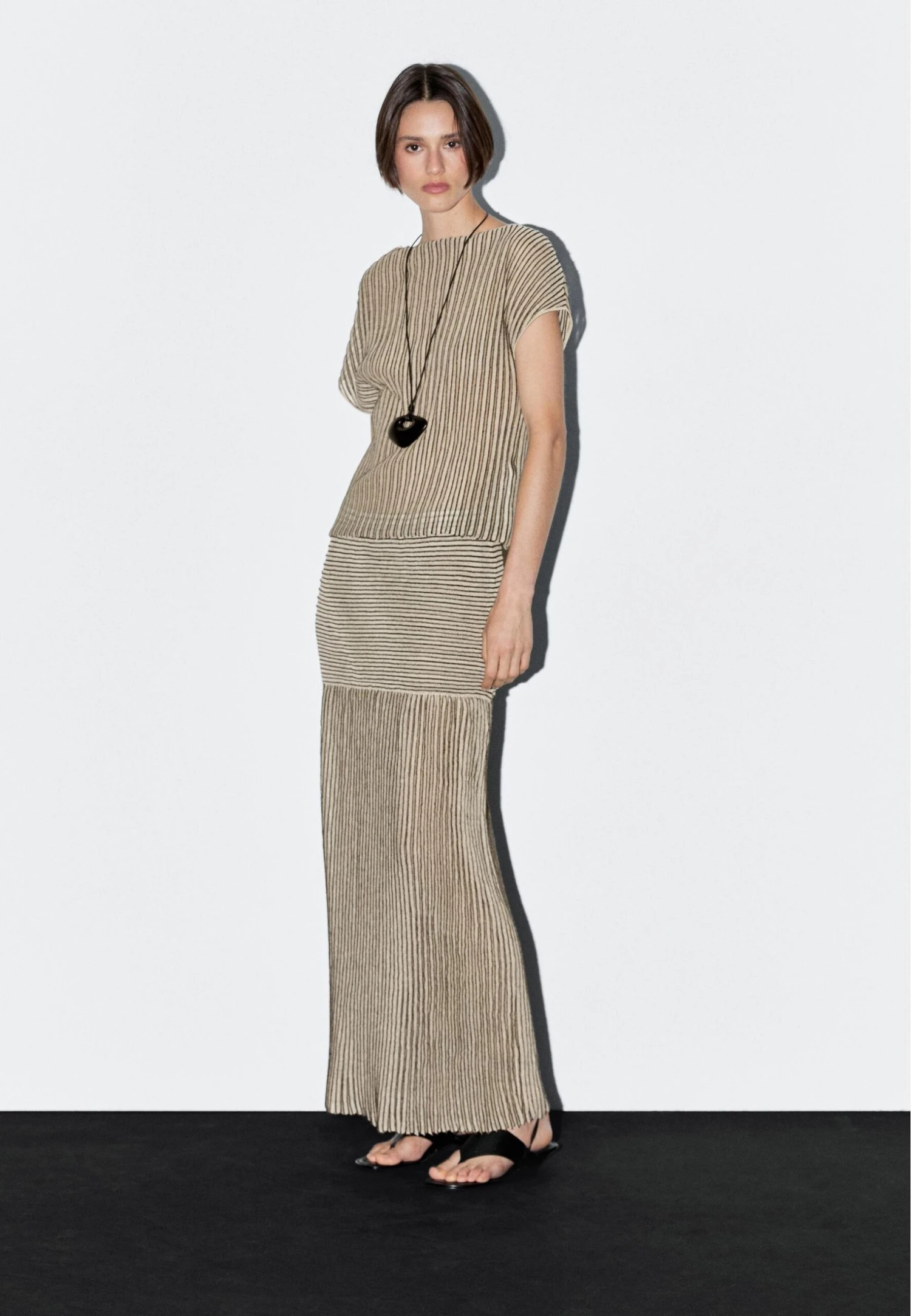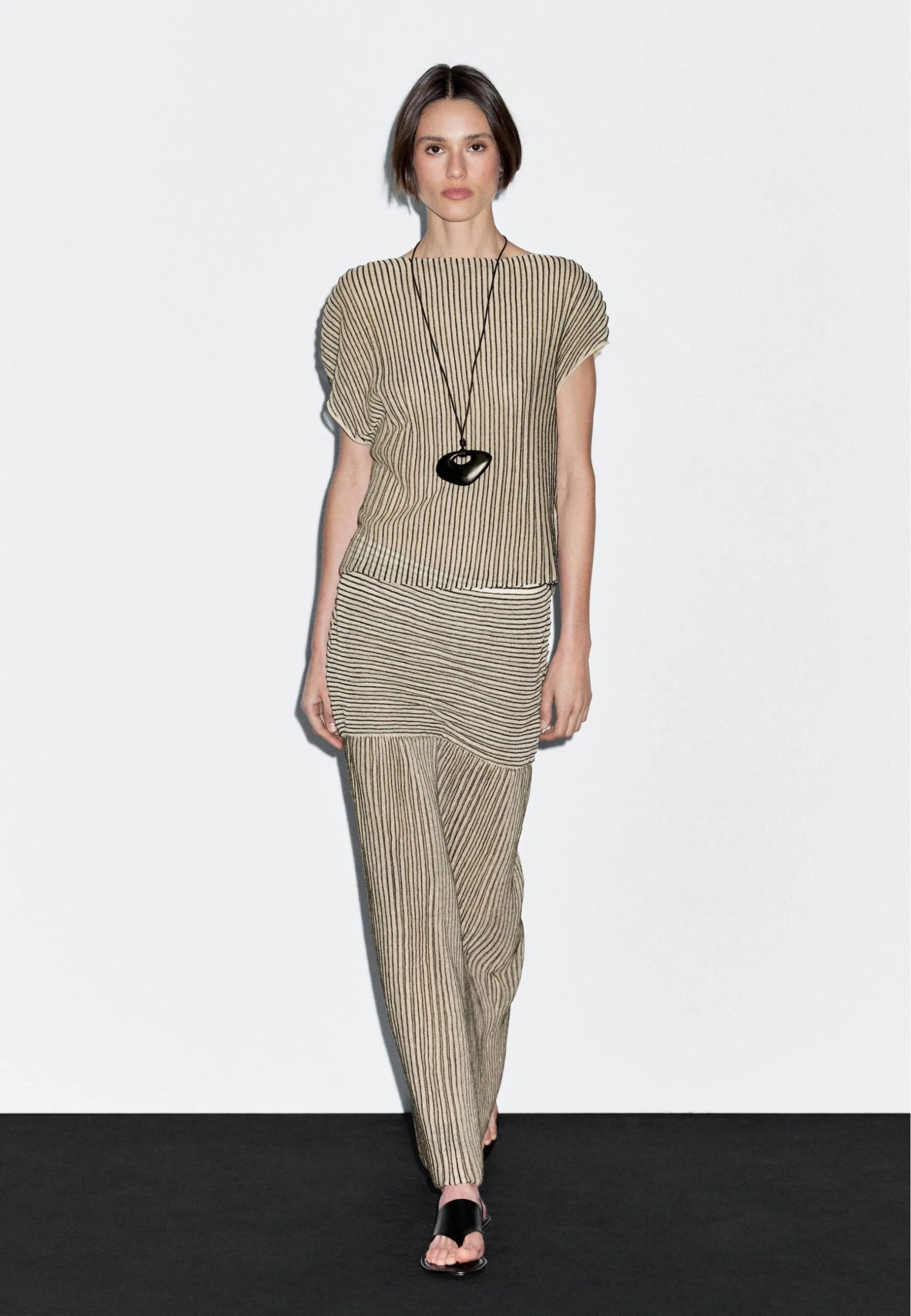 - Neckline: Boat neck