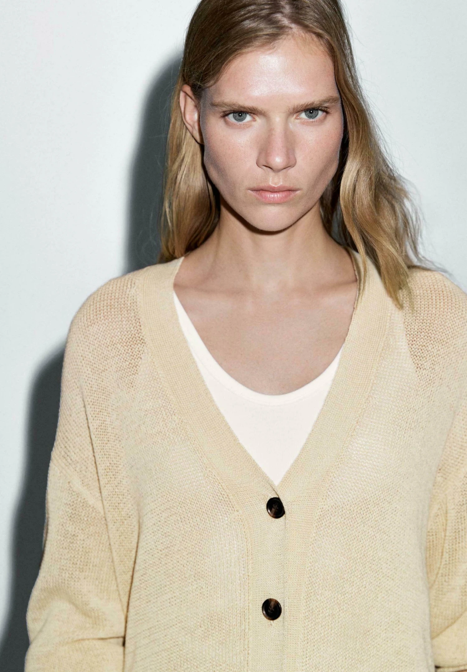 - Neckline: Low-cut v-neck