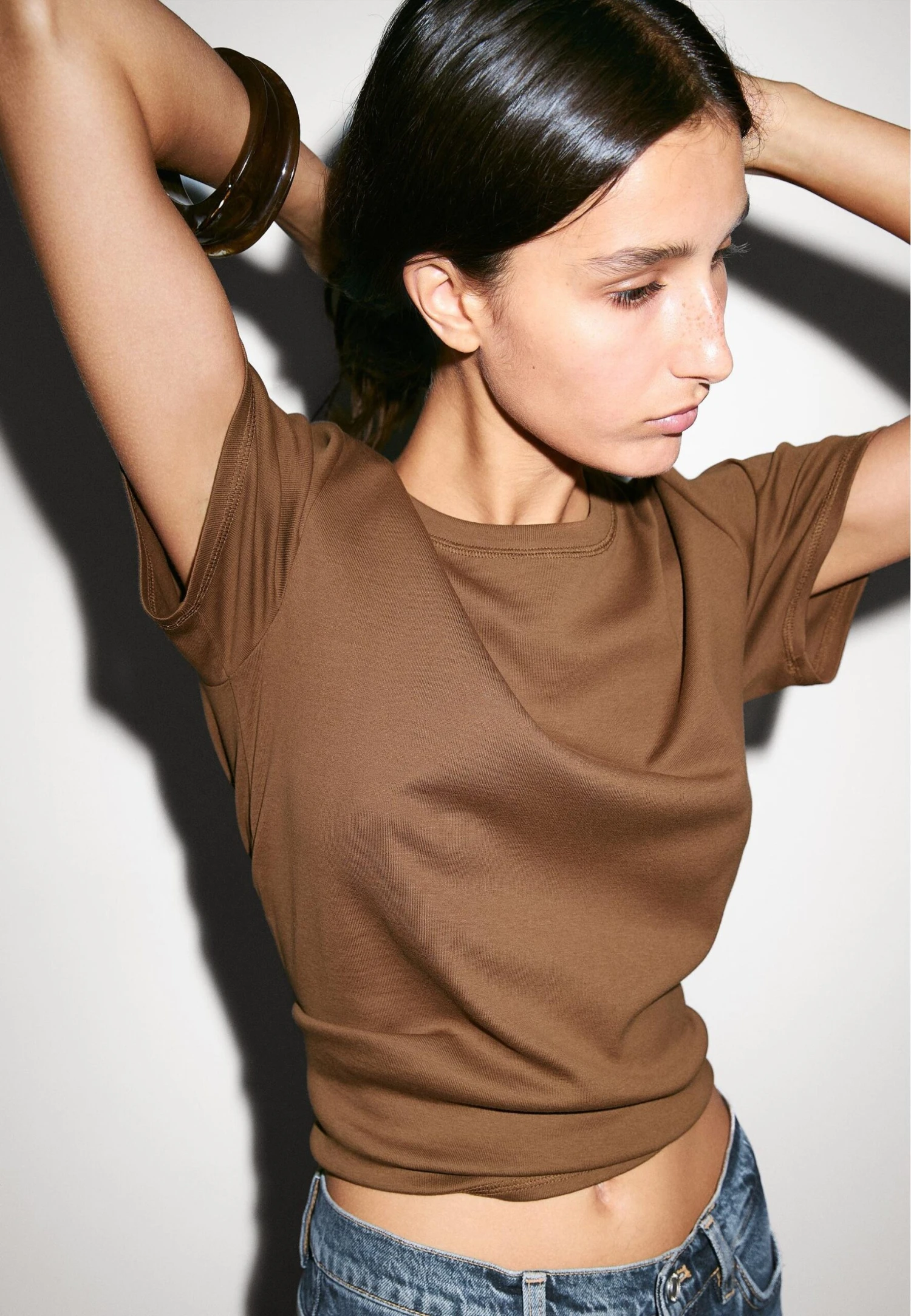 - Neckline: Crew neck
