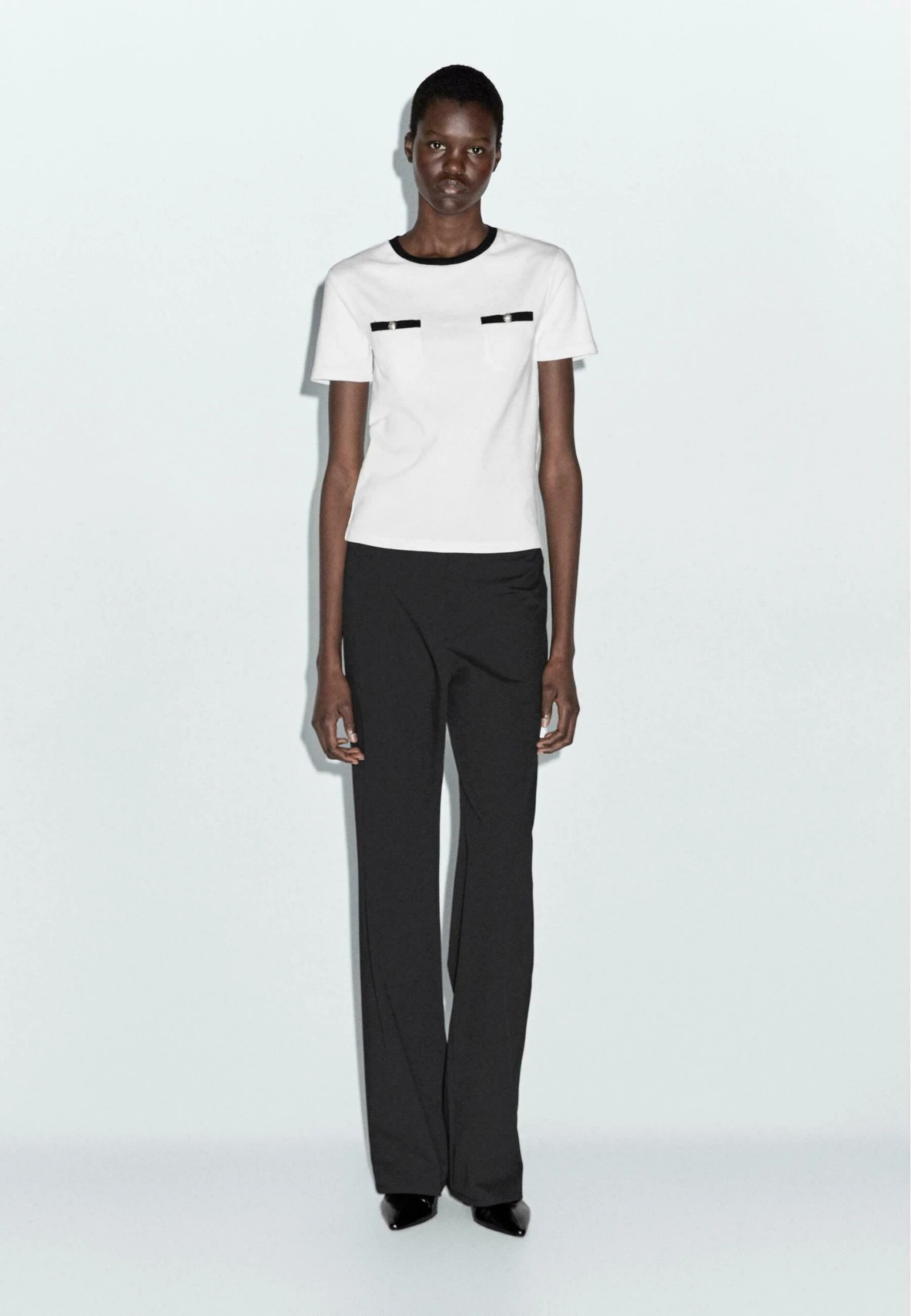 - Neckline: Crew neck