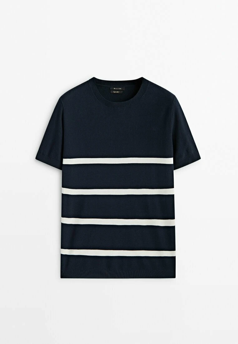 Be the first to review “Massimo Dutti Stripe Textured – Print T-Shirt – Blue” Cancel reply