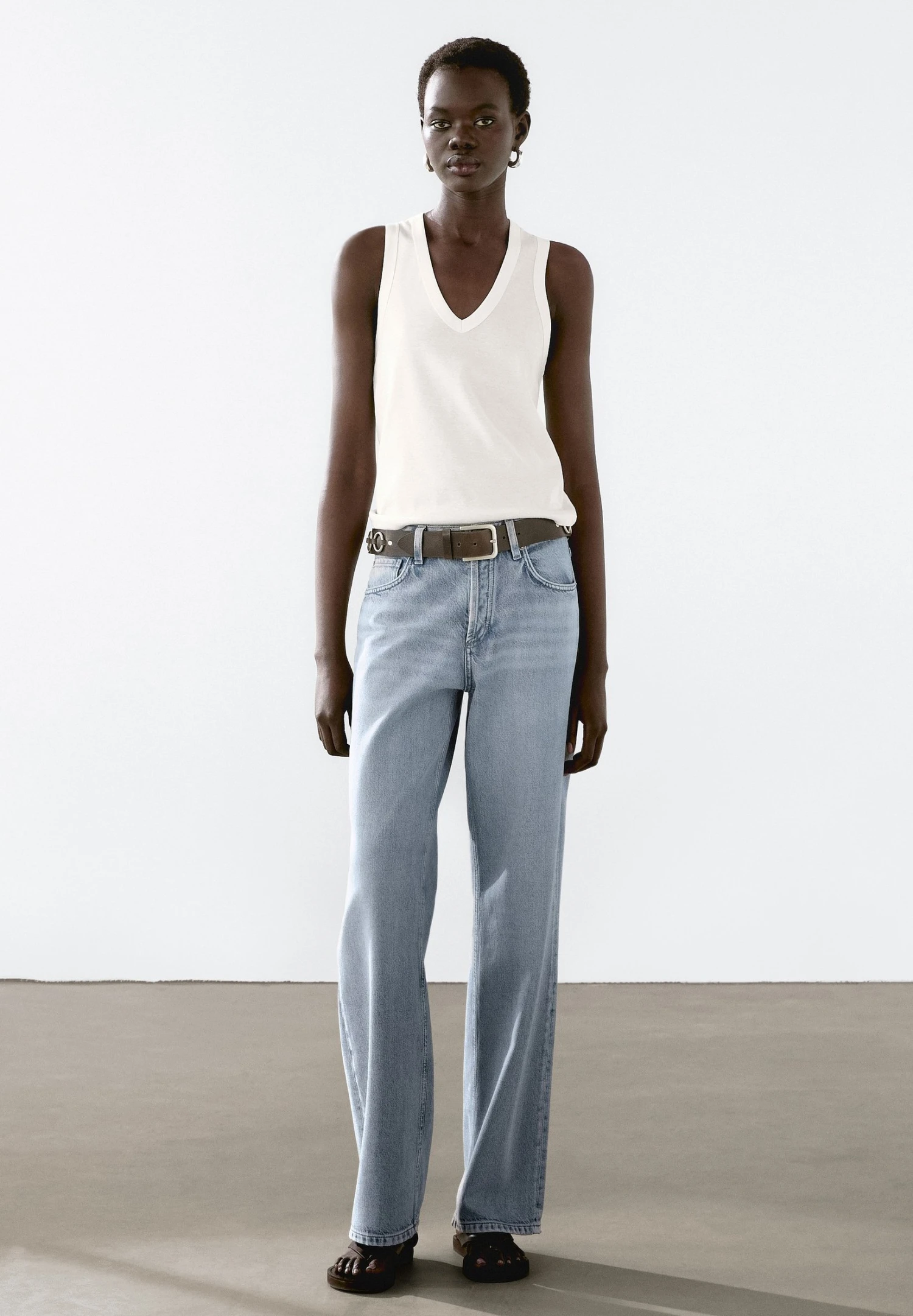 - Neckline: Low-cut v-neck